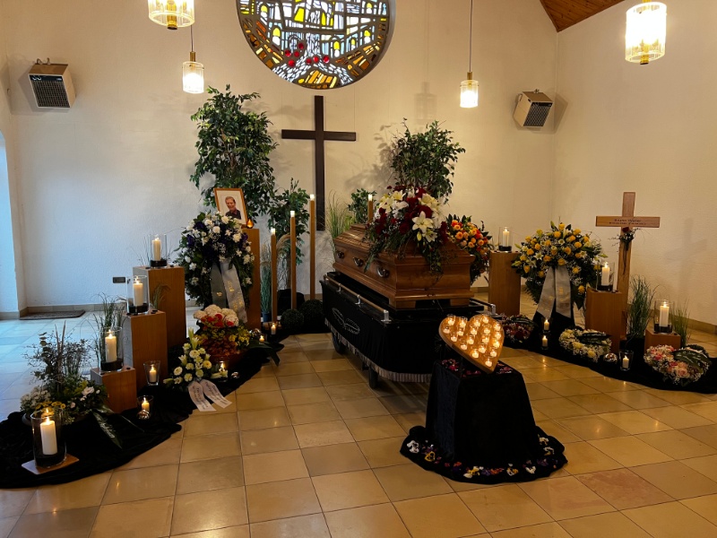 Trauerfeier mit Sarg, Friedhof Sennfeld