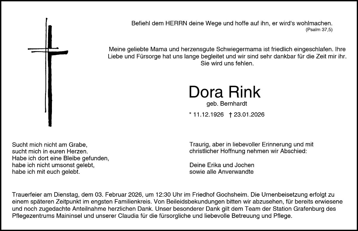 Dora Rink gestorben am 23. Januar 2026