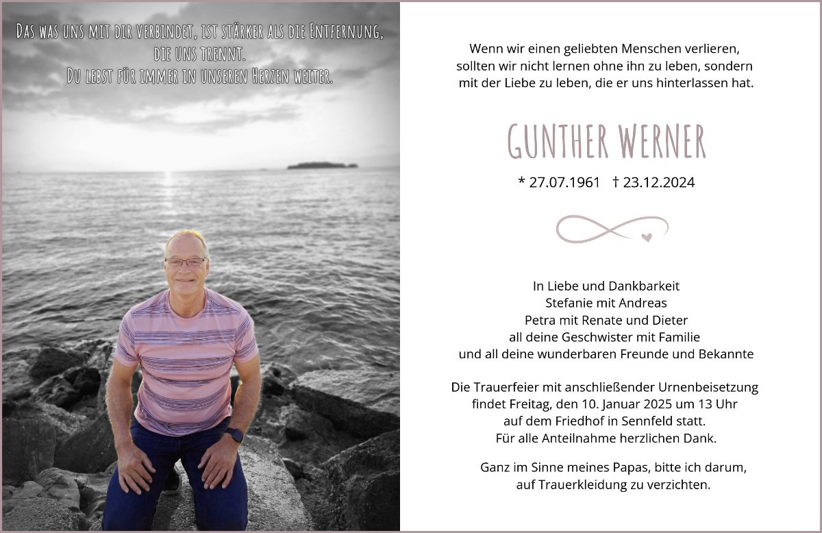 Gunther war nicht nur ein Freund, er war ein Bruder im Geiste, ein unersetzlicher Teil unseres Lebens. Seit unserer Jugend, als wir uns im Alter von 15 Jahren kennenlernten, hat er unser Leben mit seiner Herzlichkeit, seinem Humor und seiner unerschütterlichen Loyalität bereichert.