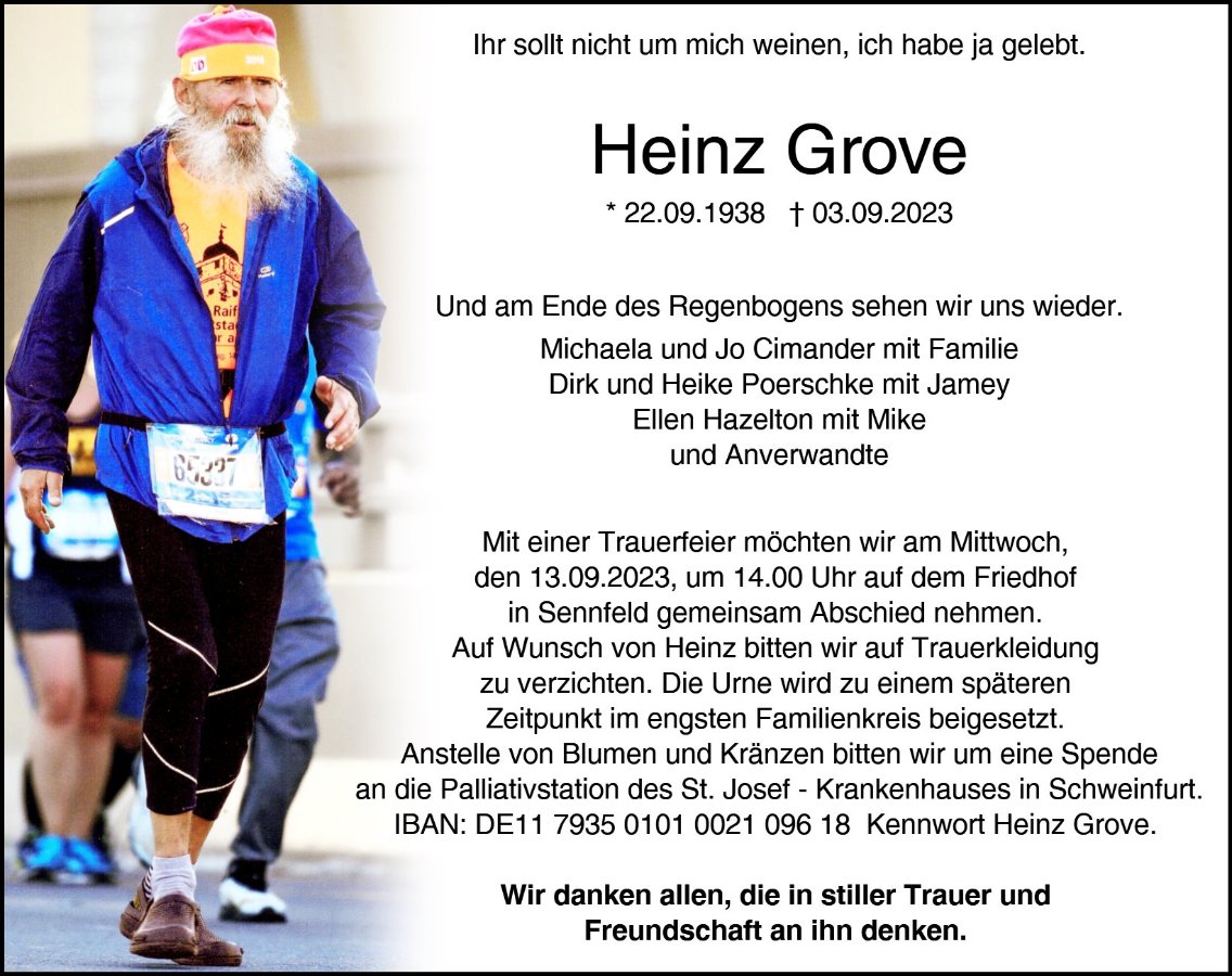 Dein letzter Lauf hat begonnen. Gute Reise Heinz, Mama erwartet dich schon.
